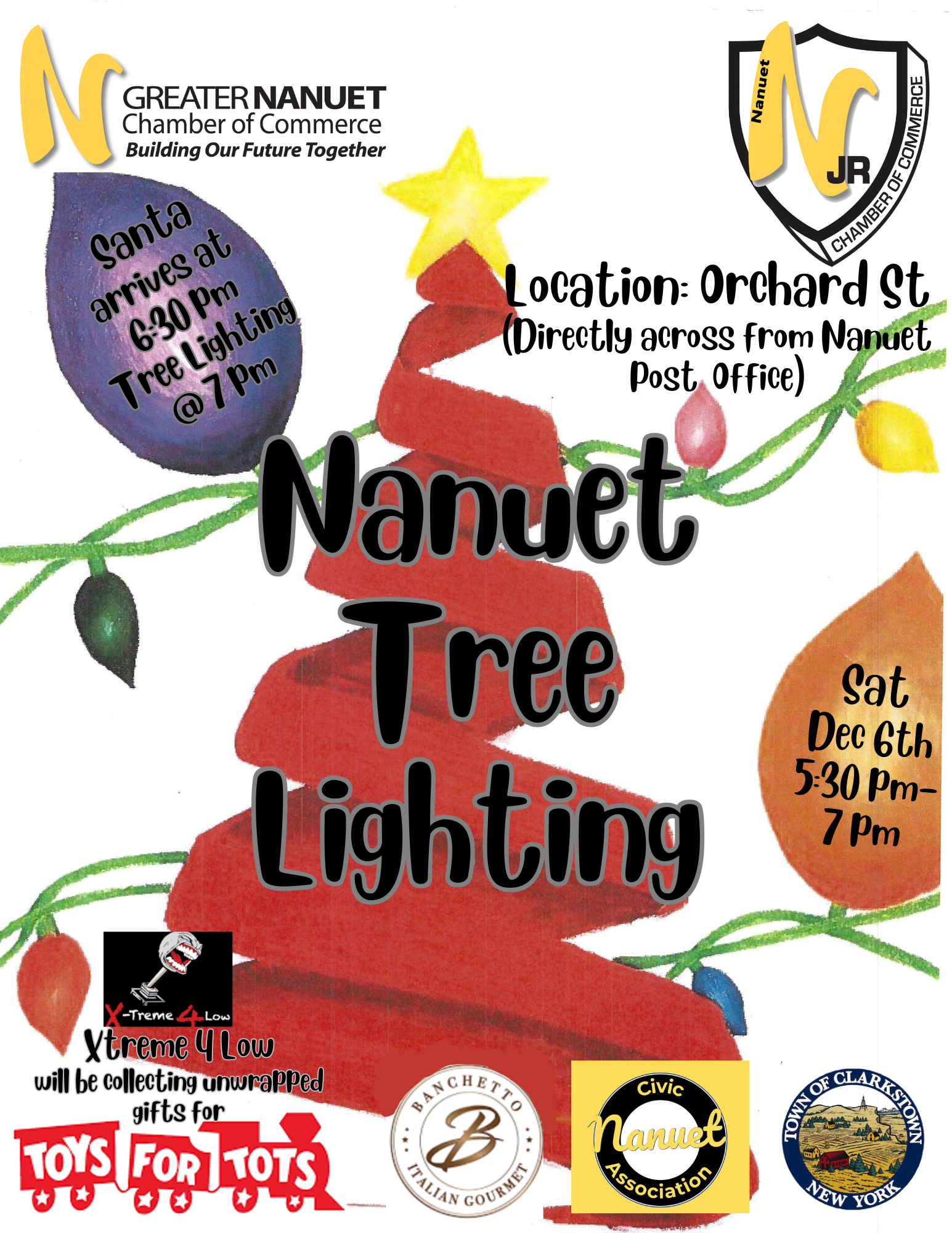 Santa arrives at 6:30 pm! Tree lighting at 7 pm.